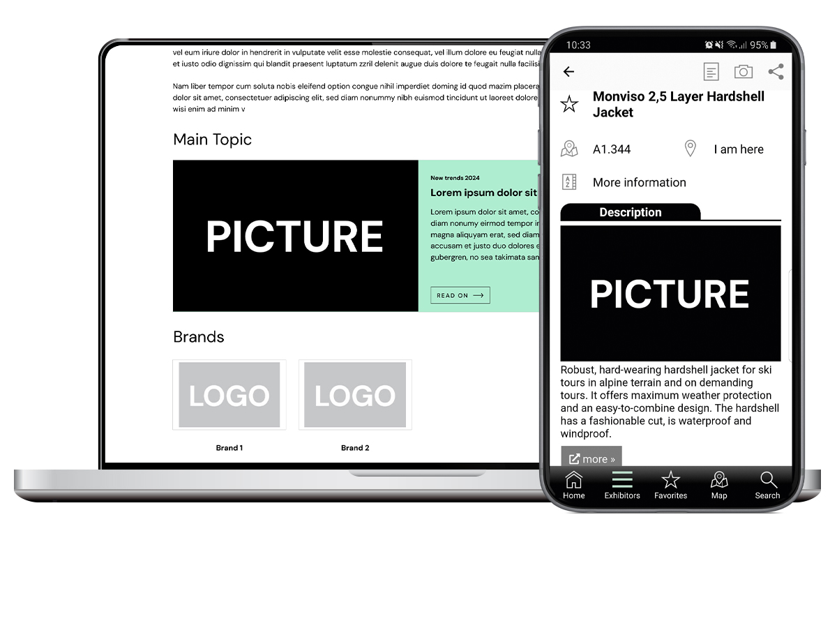 You will be immediately recognizable by your logo in the exhibitor list in the online catalog and in the app. The additional placement in your media profile gives it more impact.